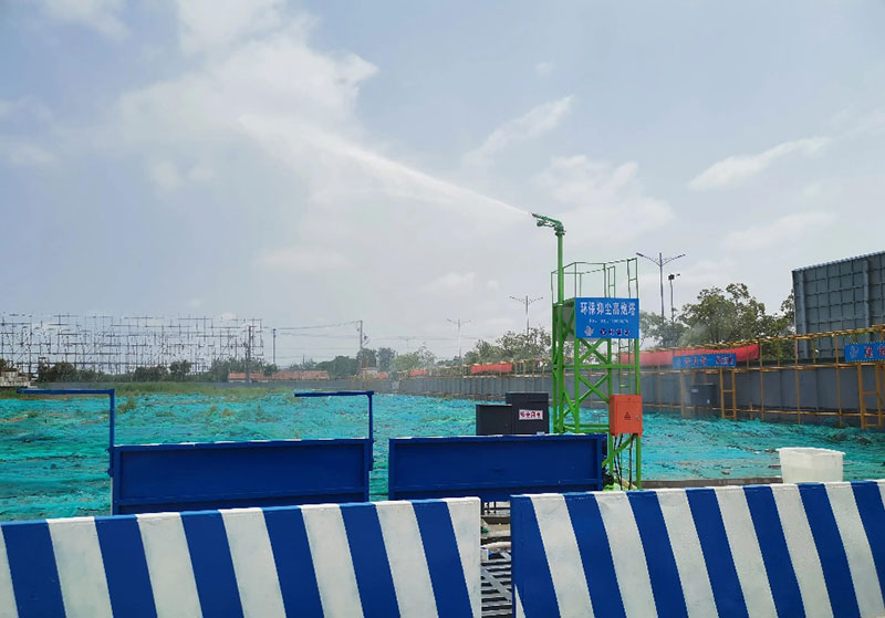 圖二:施工人員安裝環保抑塵高炮塔設備
